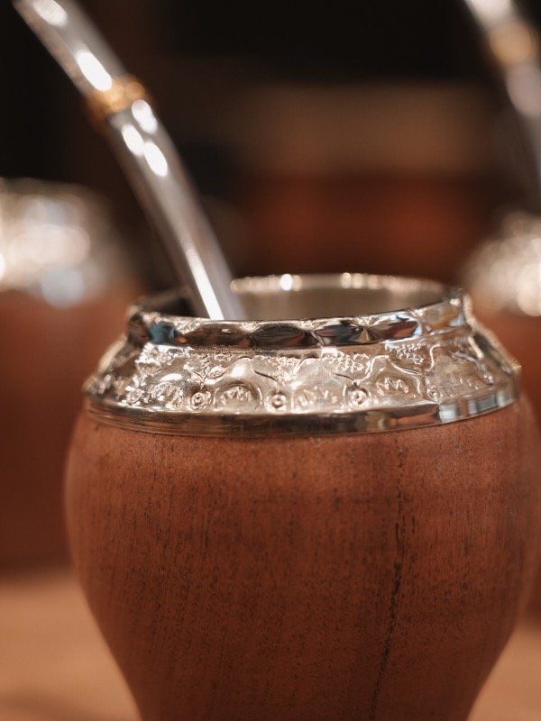 Cuenta con virola de alpaca cincelada a mano, un trabajo artesanal que aporta carácter, elegancia y un acabado premium, haciendo de cada pieza un mate único.