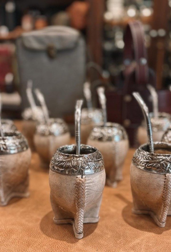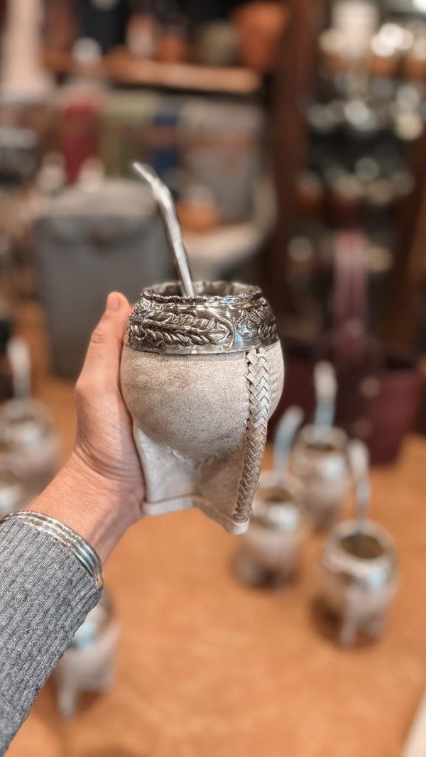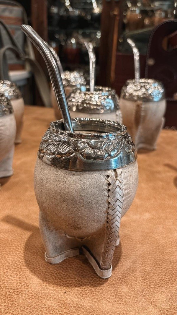 Mate Torpedo Cuero Crudo cocido en tiento de Potro, virola de Alpaca Uruguaya cincelada al Lacre!!! Incluye bombilla pala de Acero inoxidable